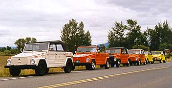 Rover leads a pack of six southern Oregon Things during a scenic drive to Gold Hill, Oregon. This treffen occurred in late May, 1997.